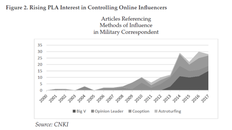 美国智库兰德公司(RAND Corporation)政策分析师莫小龙(Nathan Beauchamp-Mustafaga)和亚太问题资深专家蔡斯(Michael Chase) 的最新报告,分析了中国军方媒体近十年来的文章后发现,尽管国内的微信微博仍然是舆论主场,推特、脸书、油管等西方社交媒体平台被中国军事专家和记者讨论和分析的比重与日俱增。而且社交媒体策略的研究比重不断提升,从利用大V和意见领袖影响力,到拉拢和草根营销等各种手段层出不穷。